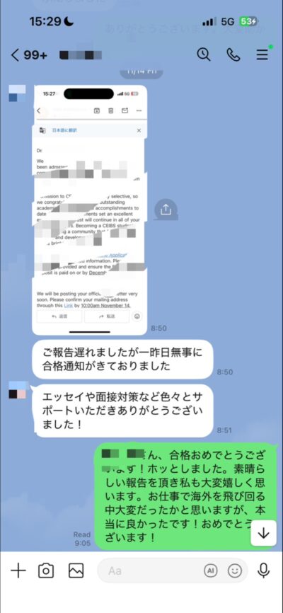 久保智司さん(仮名)は、2026intakeでCEIBS(中国)full time MBAに合格され進学します。海外出張も多く多忙でしたが、持ち前の集中力でエッセイ、インタビューそしてGREも乗り越えました。その調子でCEIBSでも頑張ってくださいね!